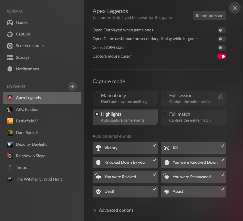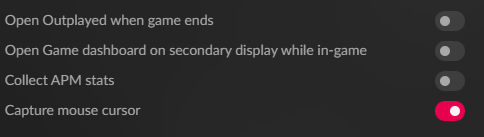 This idea could also be expanded to the other capture settings in the main menu (as shown in the second screenshot). For example, if you want to disable automatic “death” captures, you could open the death-capture setting and then quickly enable/disable it for all supported games from a single list.